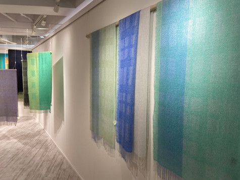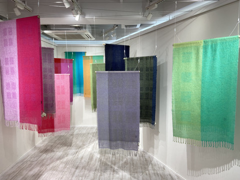 細いキッドモヘアを優しく織り込んだショールは柔らかく、配色の素晴らしさが際立っていましたし、定番のカシミヤのショールも色を活かした技法を選ばれている事で見ているだけで楽しくなります。